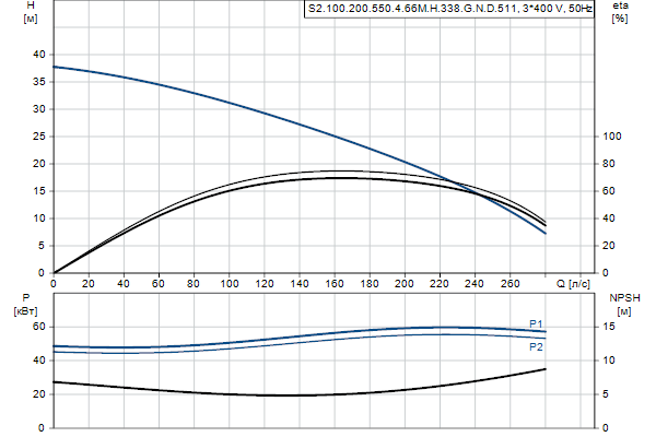 Насос предназначен для периодической и непрерывной эксплуатации. Охлаждающий кожух обеспечивает возможность работы насоса, установленного в погруженном или «сухом» положении, без охлаждения электродвигателя. Двухканальное рабочее колесо пропускает твердые частицы размером до 100 мм .