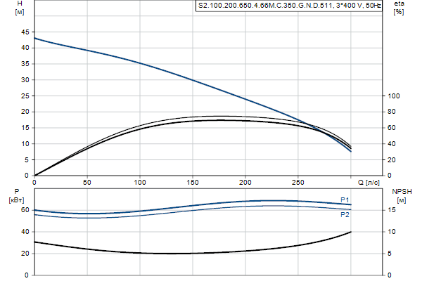 Насос предназначен для периодической и непрерывной эксплуатации. Охлаждающий кожух обеспечивает возможность работы насоса, установленного в погруженном или «сухом» положении, без охлаждения электродвигателя. Двухканальное рабочее колесо пропускает твердые частицы размером до 100 мм .