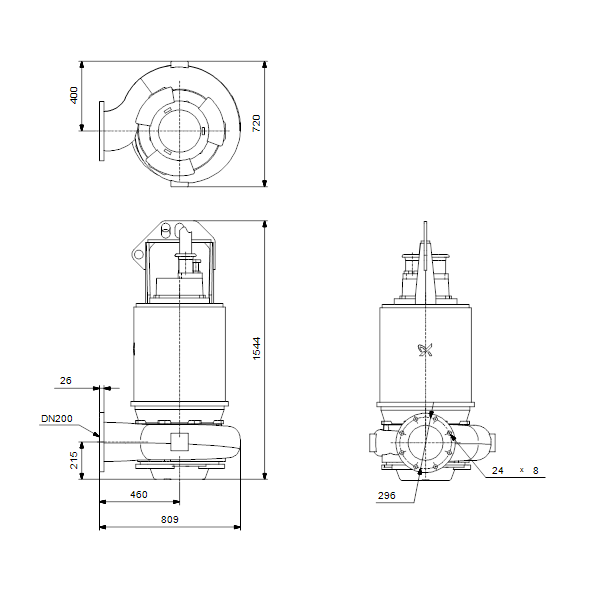 Несамовсасывающий одноступенчатый центробежный насос, предназначенный для перекачивания сточных вод, технологических вод и неочищенных сточных вод, не пропущенных через решетку.