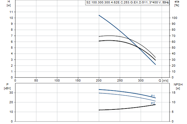 Насос предназначен для периодической и непрерывной эксплуатации. Охлаждающий кожух обеспечивает возможность работы насоса, установленного в погруженном или «сухом» положении, без охлаждения электродвигателя. Двухканальное рабочее колесо пропускает твердые частицы размером до 100 мм .