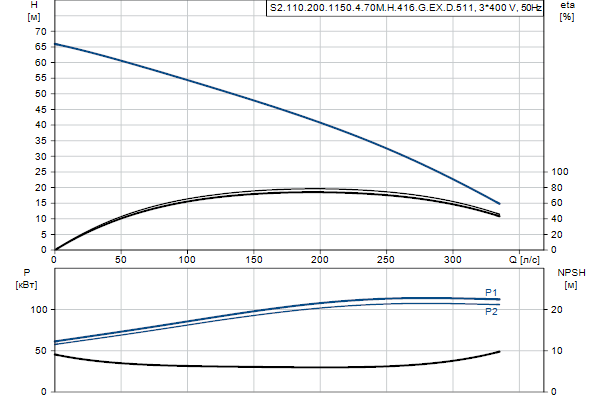Насос предназначен для периодической и непрерывной эксплуатации. Охлаждающий кожух обеспечивает возможность работы насоса, установленного в погруженном или «сухом» положении, без охлаждения электродвигателя. Двухканальное рабочее колесо пропускает твердые частицы размером до 110 мм .