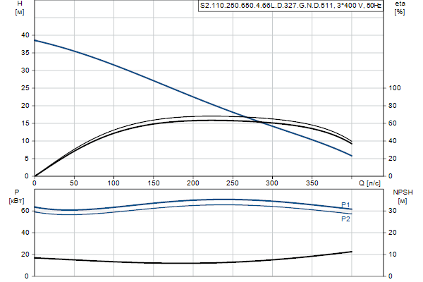 Насос предназначен для периодической и непрерывной эксплуатации. Охлаждающий кожух обеспечивает возможность работы насоса, установленного в погруженном или «сухом» положении, без охлаждения электродвигателя. Двухканальное рабочее колесо пропускает твердые частицы размером до 110 мм .