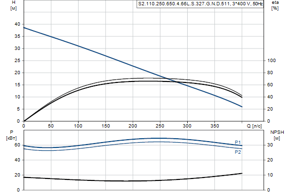 Насос предназначен для периодической и непрерывной эксплуатации в погруженном положении. Двухканальное рабочее колесо пропускает твердые частицы размером до 110 мм .