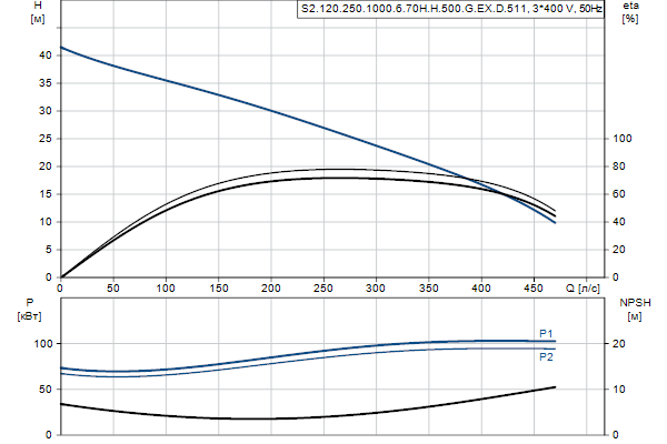 S2.120.250.1000.6.70H.H.500.G.EX.D.511Несамовсасывающий одноступенчатый центробежный насос, предназначенный для перекачивания сточных вод, технологических вод и неочищенных сточных вод, не пропущенных через решетку. Насос предназначен для периодической и непрерывной эксплуатации. Охлаждающий кожух обеспечивает возможность работы насоса, установленного в погруженном или «сухом» положении, без охлаждения электродвигателя. Двухканальное рабочее колесо пропускает твердые частицы размером до 120 мм . Система регулирования зазора рабочего колеса SmartTrim позволяет обеспечивать максимальную производительность в течение срока службы насоса. Для облегчения транспортировки, а также монтажа на месте насос оснащен прочным подъемным кронштейном. При монтаже на автоматической трубной муфте система уплотнения Grundfos SmartSeal обеспечивает герметичное соединение. Соединения трубопроводов обеспечиваются с использованием фланца DIN . Насос имеет взрывобезопасное исполнение.