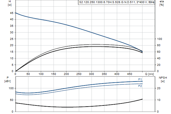 S2.120.250.1300.6.70H.S.528.G.N.D.511Несамовсасывающий одноступенчатый центробежный насос, предназначенный для перекачивания сточных вод, технологических вод и неочищенных сточных вод, не пропущенных через решетку. Насос предназначен для периодической и непрерывной эксплуатации в погруженном положении. Двухканальное рабочее колесо пропускает твердые частицы размером до 120 мм . Система регулирования зазора рабочего колеса SmartTrim позволяет обеспечивать максимальную производительность в течение срока службы насоса. Для облегчения транспортировки, а также монтажа на месте насос оснащен прочным подъемным кронштейном. При монтаже на автоматической трубной муфте система уплотнения Grundfos SmartSeal обеспечивает герметичное соединение. Соединения трубопроводов обеспечиваются с использованием фланца DIN .