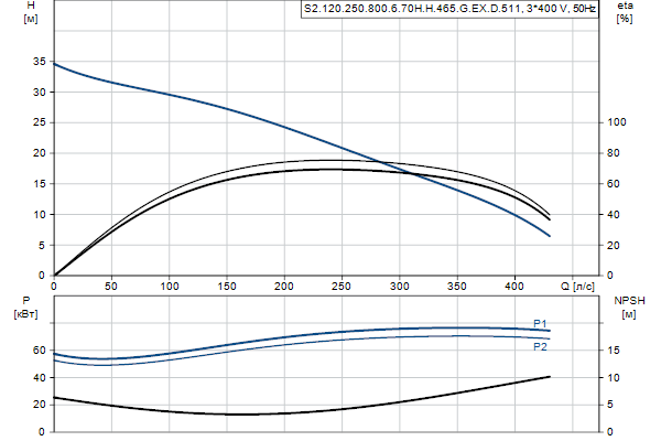 Насос предназначен для периодической и непрерывной эксплуатации. Охлаждающий кожух обеспечивает возможность работы насоса, установленного в погруженном или «сухом» положении, без охлаждения электродвигателя. Двухканальное рабочее колесо пропускает твердые частицы размером до 120 мм .