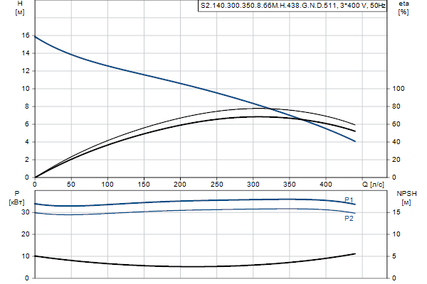 Насос предназначен для периодической и непрерывной эксплуатации. Охлаждающий кожух обеспечивает возможность работы насоса, установленного в погруженном или «сухом» положении, без охлаждения электродвигателя. Двухканальное рабочее колесо пропускает твердые частицы размером до 140 мм .