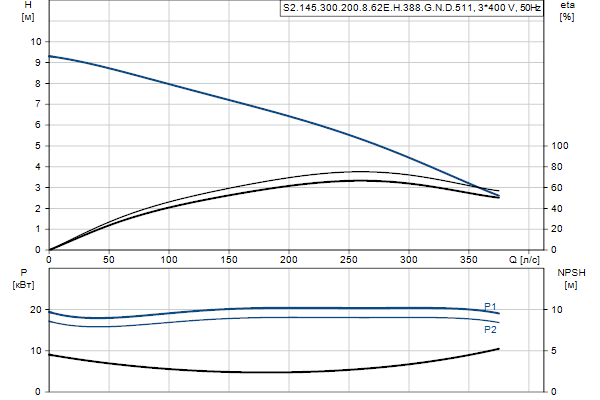 Насос предназначен для периодической и непрерывной эксплуатации. Охлаждающий кожух обеспечивает возможность работы насоса, установленного в погруженном или «сухом» положении, без охлаждения электродвигателя. Двухканальное рабочее колесо пропускает твердые частицы размером до 145 мм .
