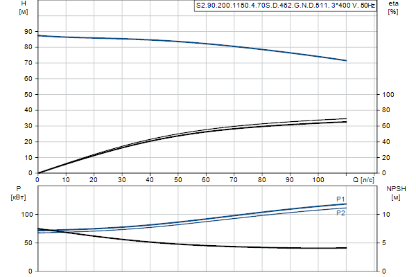 Насос предназначен для периодической и непрерывной эксплуатации. Охлаждающий кожух обеспечивает возможность работы насоса, установленного в погруженном или «сухом» положении, без охлаждения электродвигателя. Двухканальное рабочее колесо пропускает твердые частицы размером до 90 мм .