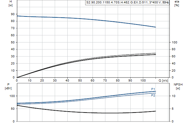 Насос предназначен для периодической и непрерывной эксплуатации. Охлаждающий кожух обеспечивает возможность работы насоса, установленного в погруженном или «сухом» положении, без охлаждения электродвигателя. Двухканальное рабочее колесо пропускает твердые частицы размером до 90 мм .
