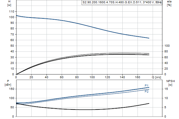 Насос предназначен для периодической и непрерывной эксплуатации. Охлаждающий кожух обеспечивает возможность работы насоса, установленного в погруженном или «сухом» положении, без охлаждения электродвигателя. Двухканальное рабочее колесо пропускает твердые частицы размером до 90 мм .
