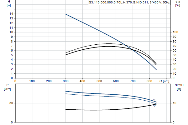 Насос предназначен для периодической и непрерывной эксплуатации. Охлаждающий кожух обеспечивает возможность работы насоса, установленного в погруженном или «сухом» положении, без охлаждения электродвигателя. Трехканальное рабочее колесо пропускает твердые частицы размером до 110 мм .