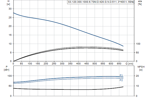 Насос предназначен для периодической и непрерывной эксплуатации. Охлаждающий кожух обеспечивает возможность работы насоса, установленного в погруженном или «сухом» положении, без охлаждения электродвигателя. Трехканальное рабочее колесо пропускает твердые частицы размером до 120 мм .