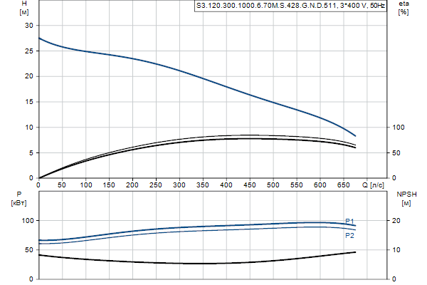 Насос предназначен для периодической и непрерывной эксплуатации в погруженном положении. Трехканальное рабочее колесо пропускает твердые частицы размером до 120 мм .