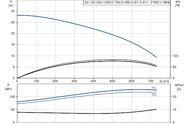 Насос предназначен для периодической и непрерывной эксплуатации. Охлаждающий кожух обеспечивает возможность работы насоса, установленного в погруженном или «сухом» положении, без охлаждения электродвигателя. Трехканальное рабочее колесо пропускает твердые частицы размером до 120 мм .