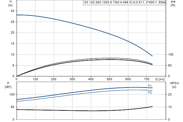 Насос предназначен для периодической и непрерывной эксплуатации. Охлаждающий кожух обеспечивает возможность работы насоса, установленного в погруженном или «сухом» положении, без охлаждения электродвигателя. Трехканальное рабочее колесо пропускает твердые частицы размером до 120 мм .
