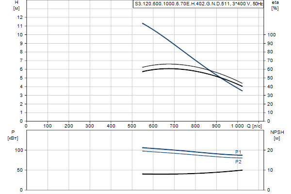 Насос предназначен для периодической и непрерывной эксплуатации. Охлаждающий кожух обеспечивает возможность работы насоса, установленного в погруженном или «сухом» положении, без охлаждения электродвигателя. Трехканальное рабочее колесо пропускает твердые частицы размером до 120 мм .