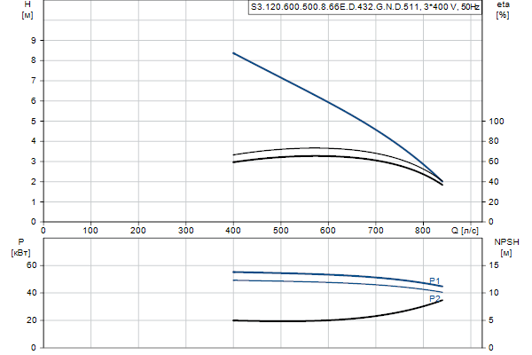 Насос предназначен для периодической и непрерывной эксплуатации. Охлаждающий кожух обеспечивает возможность работы насоса, установленного в погруженном или «сухом» положении, без охлаждения электродвигателя. Трехканальное рабочее колесо пропускает твердые частицы размером до 120 мм .