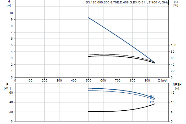 Насос предназначен для периодической и непрерывной эксплуатации. Охлаждающий кожух обеспечивает возможность работы насоса, установленного в погруженном или «сухом» положении, без охлаждения электродвигателя. Трехканальное рабочее колесо пропускает твердые частицы размером до 120 мм .