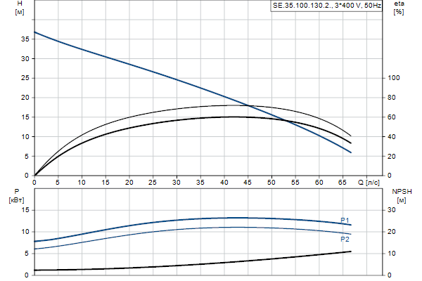 Насос предназначен для периодической и непрерывной эксплуатации. Охлаждающий кожух обеспечивает возможность работы насоса, установленного в погруженном или «сухом» положении, без охлаждения электродвигателя. Насос идет в комплекте с электродвигателем Grundfos Blueflux® с высоким КПД, изготовленным из деталей, имеющих класс энергоэффективности IE3.