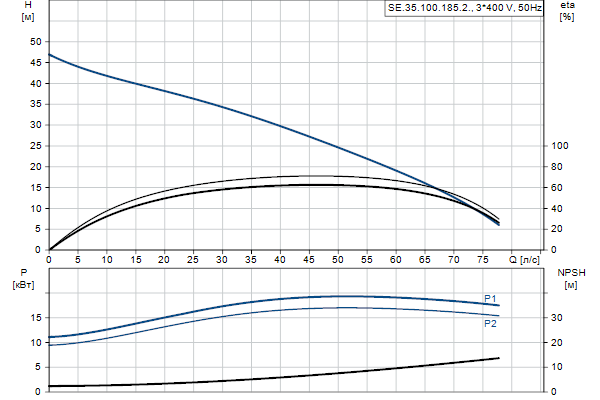 Насос предназначен для периодической и непрерывной эксплуатации. Охлаждающий кожух обеспечивает возможность работы насоса, установленного в погруженном или «сухом» положении, без охлаждения электродвигателя. Насос идет в комплекте с электродвигателем Grundfos Blueflux® с высоким КПД, изготовленным из деталей, имеющих класс энергоэффективности IE3.