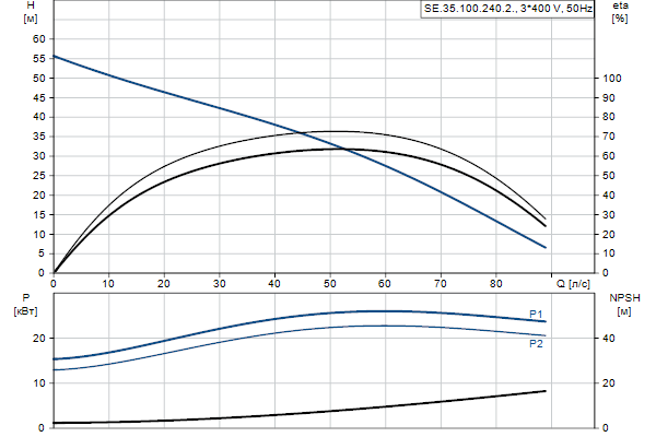 Насос предназначен для периодической и непрерывной эксплуатации. Охлаждающий кожух обеспечивает возможность работы насоса, установленного в погруженном или «сухом» положении, без охлаждения электродвигателя. Насос идет в комплекте с электродвигателем Grundfos Blueflux® с высоким КПД, изготовленным из деталей, имеющих класс энергоэффективности IE3.