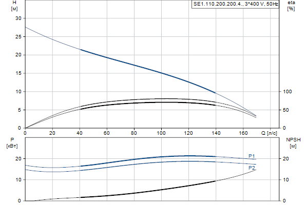 Насос идет в комплекте с электродвигателем Grundfos Blueflux® с высоким КПД, изготовленным из деталей, имеющих класс энергоэффективности IE3.