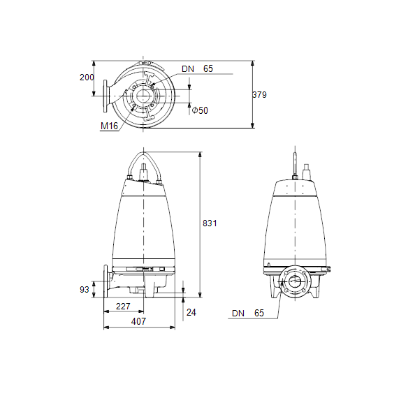 Несамовсасывающий одноступенчатый центробежный насос, предназначенный для перекачивания сточных вод, технологических вод и неочищенных сточных вод, не пропущенных через решетку.