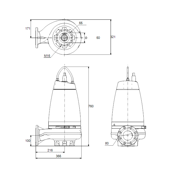 Несамовсасывающий одноступенчатый центробежный насос, предназначенный для перекачивания сточных вод, технологических вод и неочищенных сточных вод, не пропущенных через решетку.