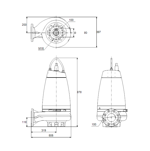 Несамовсасывающий одноступенчатый центробежный насос, предназначенный для перекачивания сточных вод, технологических вод и неочищенных сточных вод, не пропущенных через решетку.