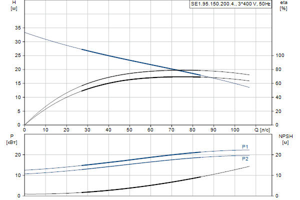 Насос идет в комплекте с электродвигателем Grundfos Blueflux® с высоким КПД, изготовленным из деталей, имеющих класс энергоэффективности IE3.