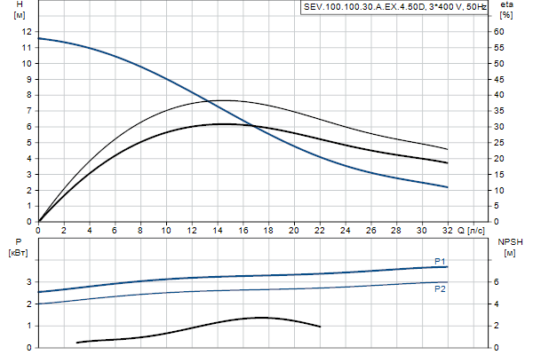 Насос предназначен для периодической и непрерывной эксплуатации. Безжидкостная система охлаждения, не требующая технического обслуживания, обеспечивает возможность использования насоса при установке в погруженном положении или «сухой» установке. Эффективное рабочее колесо SuperVortex обеспечивает проход длинных волокон и твердых частиц до 100 мм и подходит для сточных вод с содержанием сухих веществ до 5%. Уникальная система монтажа с помощью хомута из нержавеющей стали позволяет быстро и легко выполнять демонтаж насоса с узла электродвигателя для технического обслуживания и осмотра. Не требуются никакие специальные инструменты. Соединение трубопровода обеспечивается с использованием фланца DIN .