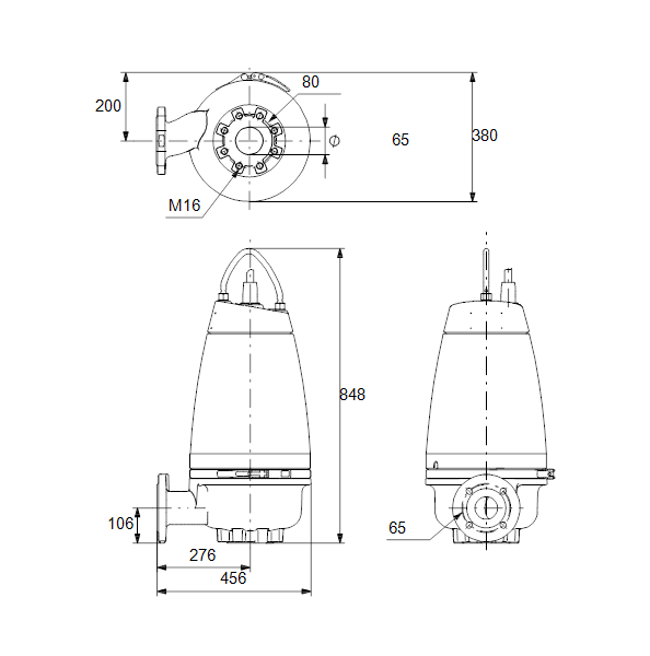 Несамовсасывающий одноступенчатый центробежный насос, предназначенный для перекачивания сточных вод, технологических вод и неочищенных сточных вод, не пропущенных через решетку.