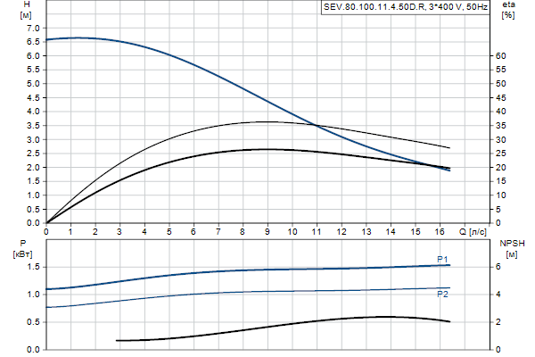 Насос предназначен для периодической и непрерывной эксплуатации. Безжидкостная система охлаждения, не требующая технического обслуживания, обеспечивает возможность использования насоса при установке в погруженном положении или «сухой» установке. Эффективное рабочее колесо SuperVortex обеспечивает проход длинных волокон и твердых частиц до 80 мм и подходит для сточных вод с содержанием сухих веществ до 5%. Уникальная система монтажа с помощью хомута из нержавеющей стали позволяет быстро и легко выполнять демонтаж насоса с узла электродвигателя для технического обслуживания и осмотра. Не требуются никакие специальные инструменты. Соединение трубопровода обеспечивается с использованием фланца DIN .