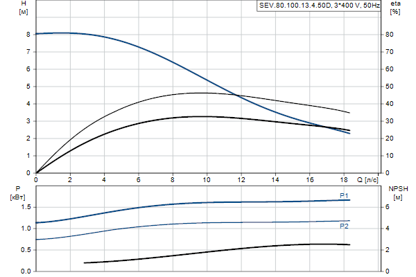 Насос предназначен для периодической и непрерывной эксплуатации. Безжидкостная система охлаждения, не требующая технического обслуживания, обеспечивает возможность использования насоса при установке в погруженном положении или «сухой» установке. Эффективное рабочее колесо SuperVortex обеспечивает проход длинных волокон и твердых частиц до 80 мм и подходит для сточных вод с содержанием сухих веществ до 5%. Уникальная система монтажа с помощью хомута из нержавеющей стали позволяет быстро и легко выполнять демонтаж насоса с узла электродвигателя для технического обслуживания и осмотра. Не требуются никакие специальные инструменты. Соединение трубопровода обеспечивается с использованием фланца DIN .