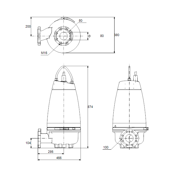 Несамовсасывающий одноступенчатый центробежный насос, предназначенный для перекачивания сточных вод, технологических вод и неочищенных сточных вод, не пропущенных через решетку.