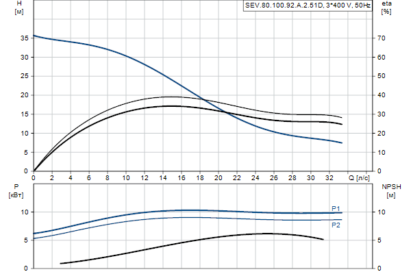 Насос предназначен для периодической и непрерывной эксплуатации. Безжидкостная система охлаждения, не требующая технического обслуживания, обеспечивает возможность использования насоса при установке в погруженном положении или «сухой» установке. Эффективное рабочее колесо SuperVortex обеспечивает проход длинных волокон и твердых частиц до 80 мм и подходит для сточных вод с содержанием сухих веществ до 5%. Уникальная система монтажа с помощью хомута из нержавеющей стали позволяет быстро и легко выполнять демонтаж насоса с узла электродвигателя для технического обслуживания и осмотра. Не требуются никакие специальные инструменты. Соединение трубопровода обеспечивается с использованием фланца DIN .