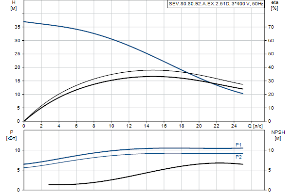 Насос предназначен для периодической и непрерывной эксплуатации. Безжидкостная система охлаждения, не требующая технического обслуживания, обеспечивает возможность использования насоса при установке в погруженном положении или «сухой» установке. Эффективное рабочее колесо SuperVortex обеспечивает проход длинных волокон и твердых частиц до 80 мм и подходит для сточных вод с содержанием сухих веществ до 5%. Уникальная система монтажа с помощью хомута из нержавеющей стали позволяет быстро и легко выполнять демонтаж насоса с узла электродвигателя для технического обслуживания и осмотра. Не требуются никакие специальные инструменты. Соединение трубопровода обеспечивается с использованием фланца DIN .