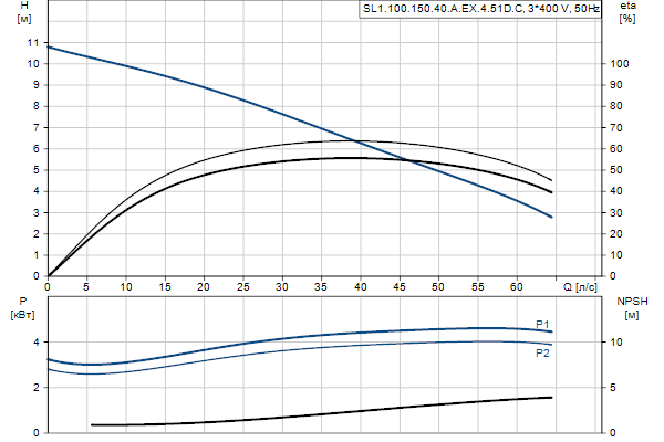 SL1.100.150.40.A.EX.4.51D.CНесамовсасывающий одноступенчатый центробежный насос, предназначенный для перекачивания сточных вод, технологических вод и неочищенных сточных вод, не пропущенных через решетку. Насос предназначен для периодической и непрерывной эксплуатации в погруженном положении. Рабочее колесо S-tube® обеспечивает свободный сферический проход твердых частиц до 100 мм и подходит для сточных вод с содержанием сухих веществ до 3%. Уникальная система монтажа с помощью хомута из нержавеющей стали позволяет быстро и легко выполнять демонтаж насоса с узла электродвигателя для технического обслуживания и осмотра. Не требуются никакие специальные инструменты. Соединение трубопровода обеспечивается с использованием фланца DIN . Насос имеет взрывобезопасное исполнение.
