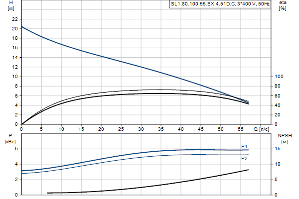 SL1.80.100.55.EX.4.51D.CНесамовсасывающий одноступенчатый центробежный насос, предназначенный для перекачивания сточных вод, технологических вод и неочищенных сточных вод, не пропущенных через решетку. Насос предназначен для периодической и непрерывной эксплуатации в погруженном положении. Рабочее колесо S-tube® обеспечивает свободный сферический проход твердых частиц до 80 мм и подходит для сточных вод с содержанием сухих веществ до 3%. Уникальная система монтажа с помощью хомута из нержавеющей стали позволяет быстро и легко выполнять демонтаж насоса с узла электродвигателя для технического обслуживания и осмотра. Не требуются никакие специальные инструменты. Соединение трубопровода обеспечивается с использованием фланца DIN . Насос имеет взрывобезопасное исполнение.