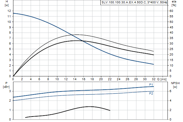 SLV.100.100.30.A.EX.4.50D.CНесамовсасывающий одноступенчатый центробежный насос, предназначенный для перекачивания сточных вод, технологических вод и неочищенных сточных вод, не пропущенных через решетку. Насос предназначен для периодической и непрерывной эксплуатации в погруженном положении. Эффективное рабочее колесо SuperVortex обеспечивает проход длинных волокон и твердых частиц до 100 мм и подходит для сточных вод с содержанием сухих веществ до 5%. Уникальная система монтажа с помощью хомута из нержавеющей стали позволяет быстро и легко выполнять демонтаж насоса с узла электродвигателя для технического обслуживания и осмотра. Не требуются никакие специальные инструменты. Соединение трубопровода обеспечивается с использованием фланца DIN . Насос имеет взрывобезопасное исполнение.