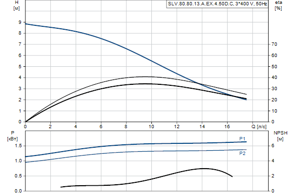 SLV.80.80.13.A.EX.4.50D.CНесамовсасывающий одноступенчатый центробежный насос, предназначенный для перекачивания сточных вод, технологических вод и неочищенных сточных вод, не пропущенных через решетку. Насос предназначен для периодической и непрерывной эксплуатации в погруженном положении. Эффективное рабочее колесо SuperVortex обеспечивает проход длинных волокон и твердых частиц до 80 мм и подходит для сточных вод с содержанием сухих веществ до 5%. Уникальная система монтажа с помощью хомута из нержавеющей стали позволяет быстро и легко выполнять демонтаж насоса с узла электродвигателя для технического обслуживания и осмотра. Не требуются никакие специальные инструменты. Соединение трубопровода обеспечивается с использованием фланца DIN . Насос имеет взрывобезопасное исполнение.