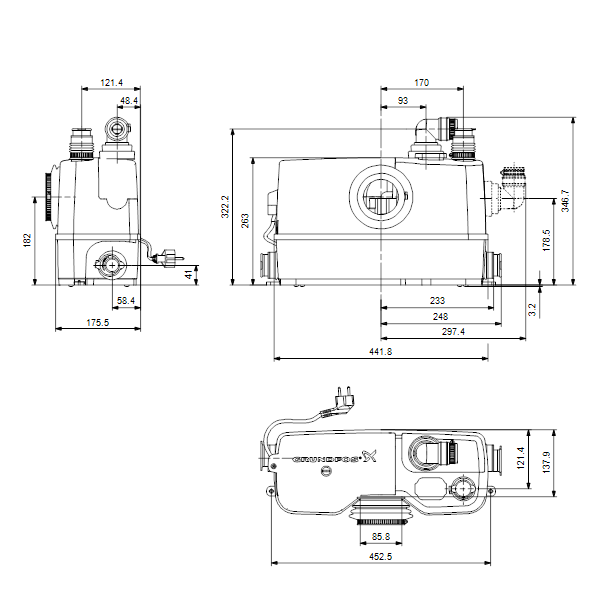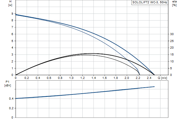 SOLOLIFT2 WC-3Sololift2 WC-3 - малогабаритная, полностью укомплектованная и готовая к монтажу канализационная насосная установка для перекачивания хозяйственно-бытовых сточных вод от тех помещений в частных домах, от которых сточные воды нельзя направить в канализацию самотеком.