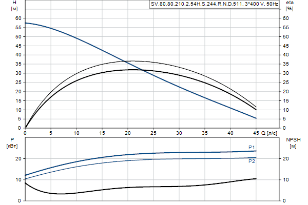 Насос предназначен для периодической и непрерывной эксплуатации в погруженном положении. Рабочее колесо SuperVortex пропускает твердые частицы размером до 80 мм .