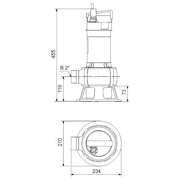 Насос располагается на опоре и имеет рукоятку для переноса. Поставляется с силовым кабелем