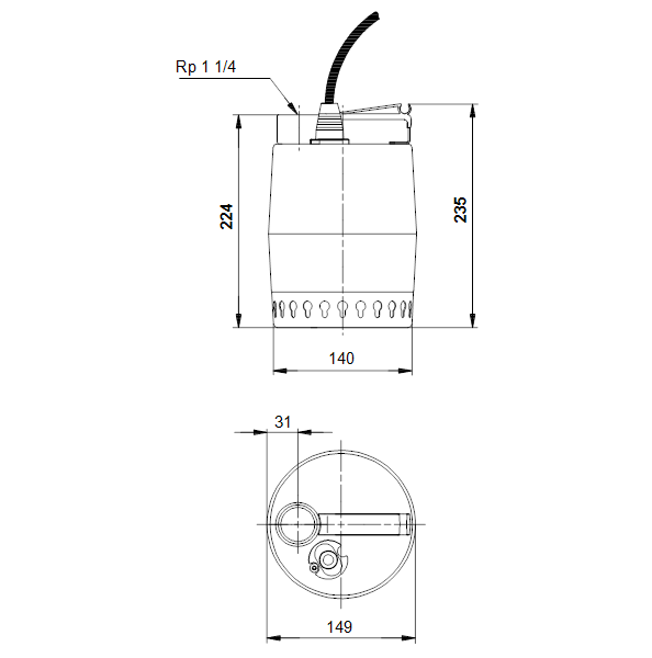 Полуоткрытое рабочее колесо имеет свободный проход 10 мм и обеспечивает перекачивание грунтовых, дождевых и сточных вод.