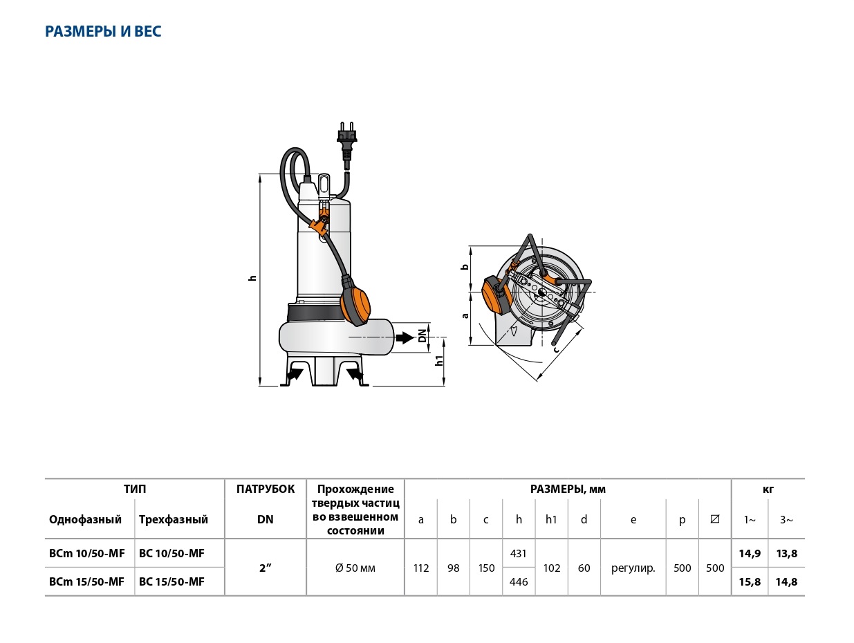 Погружные насосы BC-MF рекомендуются для подъема воды со значительной и сильной степенью загрязнения, применимы в домашнем и коммунальном хозяйстве. Они оснащены ДВУХКАНАЛЬНЫМ рабочим колесом из нержавеющей стали, которое обеспечивает перекачку жидкостей с присутствием во взвеси коротковолокнистых твердых частиц диаметром до Ø 50 мм. Они рекомендуются для отвода сточных вод и нечистот, поверхностных вод, смеси воды с илом на таких объектах, как дачи, коттеджи и дома индивидуальной застройки. Эти насосы отличаются надежностью в автоматических стационарных установках.