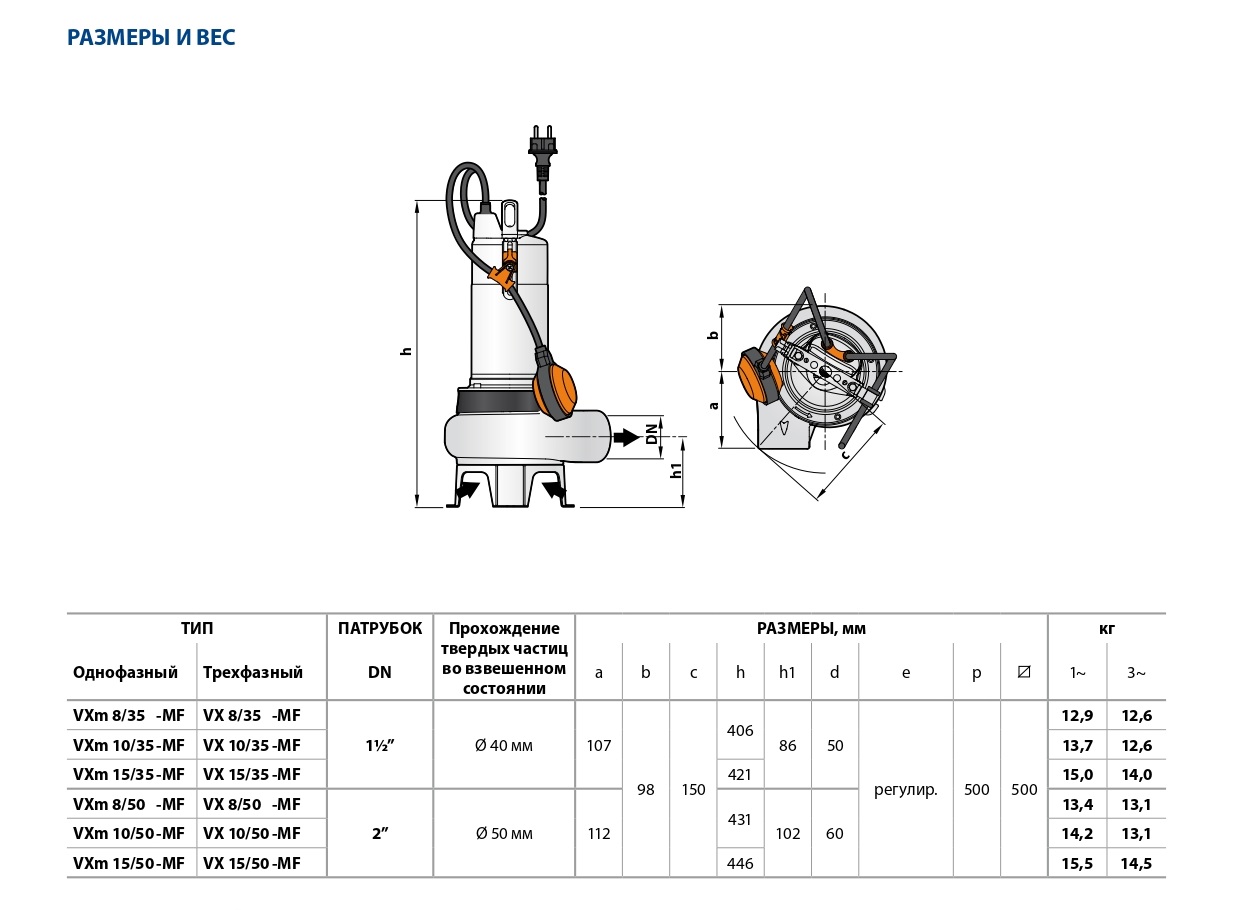 Канализационный насос Pedrollo VX 8/35-MF 10м