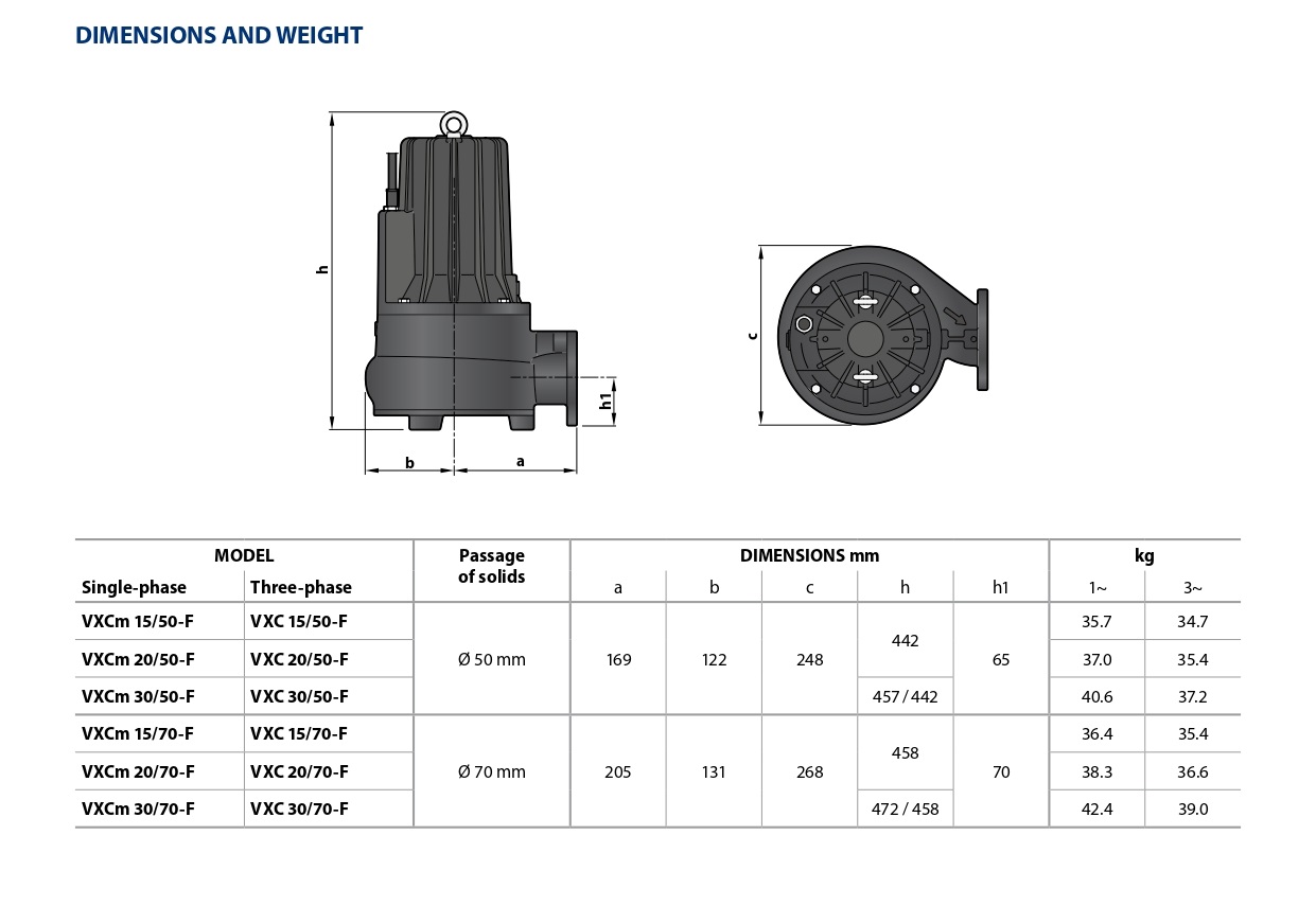 Насосы серии VXC-F, изготовленные из прочного чугуна значительной толщины, прочностью и устойчивостью к абразивному воздействию, а также долговечностью оснащены крыльчаткой VORTEX и поэтому подходят для отвода сточных вод, воды, смешанной с буровым раствором, жидкостей, содержащих воздух или газ, и гнилостные грязи. Они рекомендуются для стационарной установки при размещении в подходящих колодцах, канализации, туннелях, колодцах, подземных автостоянках и т.д.
