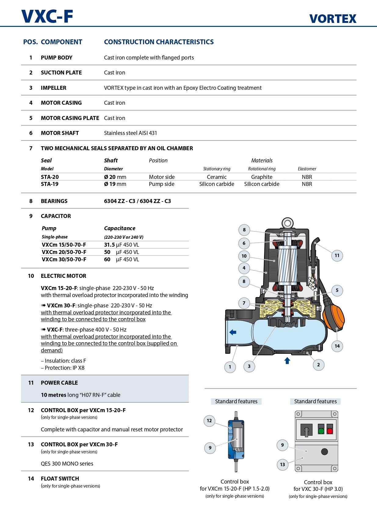 Насосы серии VXC-F, изготовленные из прочного чугуна значительной толщины, прочностью и устойчивостью к абразивному воздействию, а также долговечностью оснащены крыльчаткой VORTEX и поэтому подходят для отвода сточных вод, воды, смешанной с буровым раствором, жидкостей, содержащих воздух или газ, и гнилостные грязи. Они рекомендуются для стационарной установки при размещении в подходящих колодцах, канализации, туннелях, колодцах, подземных автостоянках и т.д.